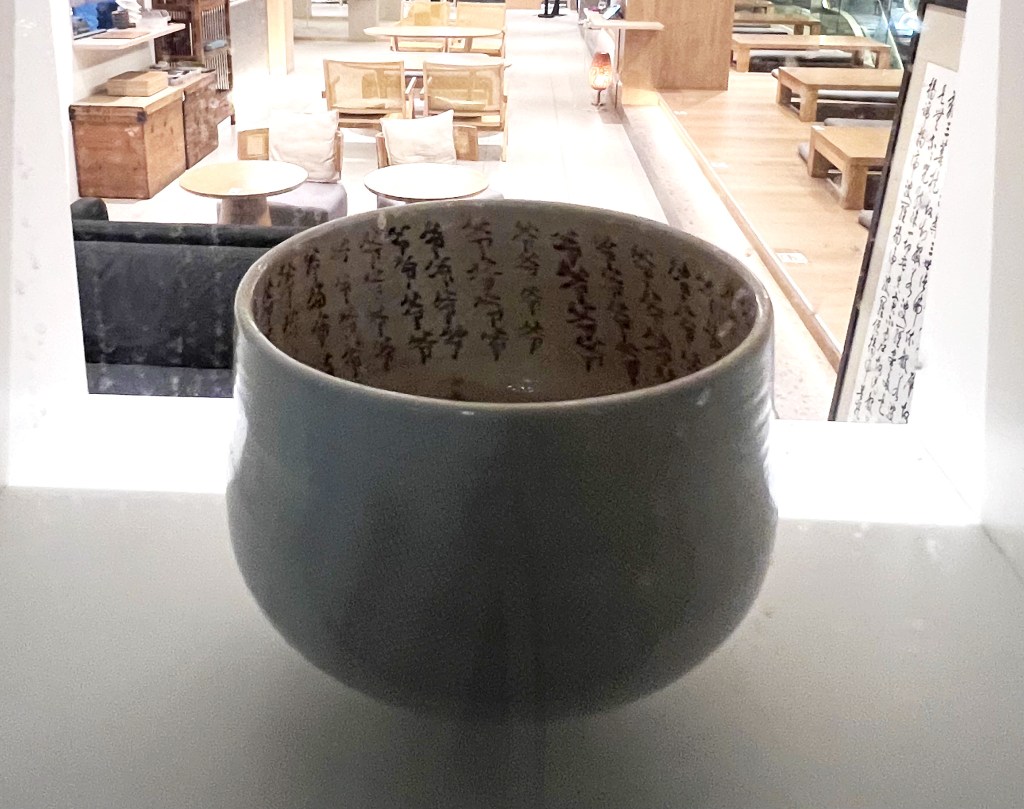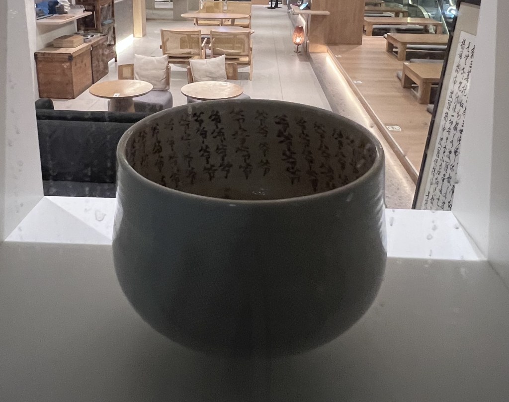 The edit focuses on the calligraphy details inside the cup and banner on the right.
