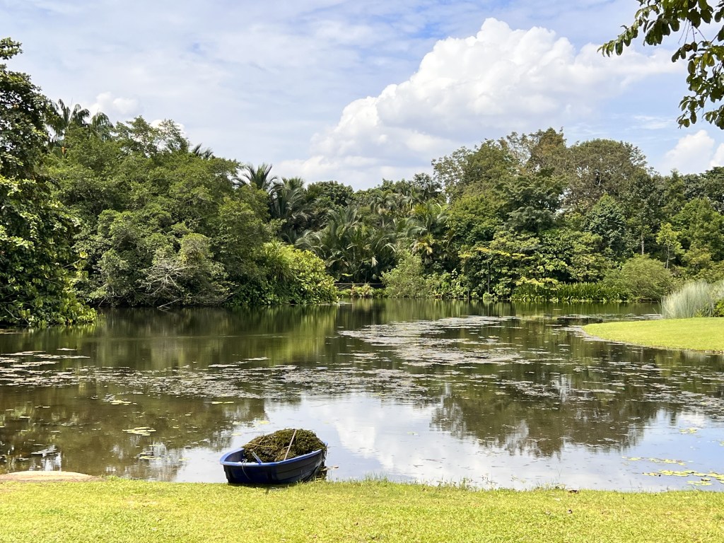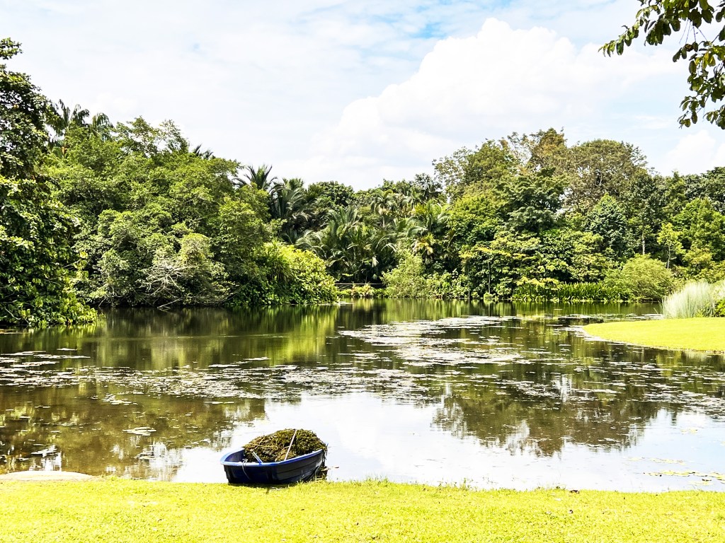 The edit focuses on greenery and water reflection.